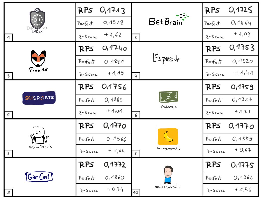 A user on Twitter by the name of Alex B has very kindly collated the results of 35 Premier League forecasting models and keeps a running total. See his page here where he discusses the setup, and find the current standings here. Also note his fantastic cartoonifed drawing of my profile photo!